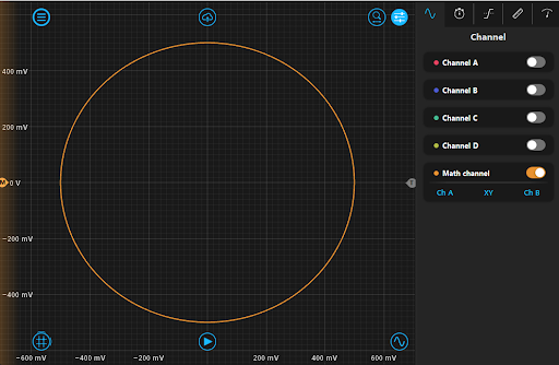 Figure 2: Use the X-Y function on the Math channel in the Moku Oscilloscope to view two traces plotted against each other.